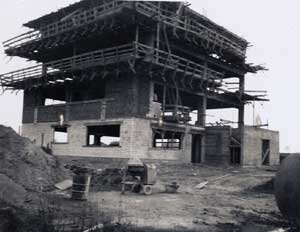 Baubeginn einer neuen Produktionsstätte in Soltau mit Hochraumlager, einem der ersten automatischen Hochraumlager in Deutschland.