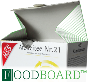 Entwicklung einer hochwertigen Verpackungsmethode für die Kartonieren unserer Teebeutelmaschinen: Foodboard™ dichtet die Schachtel gegen Schadstoffe wie MOSH/MOAH und dergleichen. Erreicht wird dies durch die Kombination von Falzklappen im Randbereich mit dem speziellen Kartonmaterial Foodboard™ der Mayr-Melnhof Gruppe. Das neue System kann auf allen Standardkartonierern unseres Maschinenparks nachgerüstet werden.